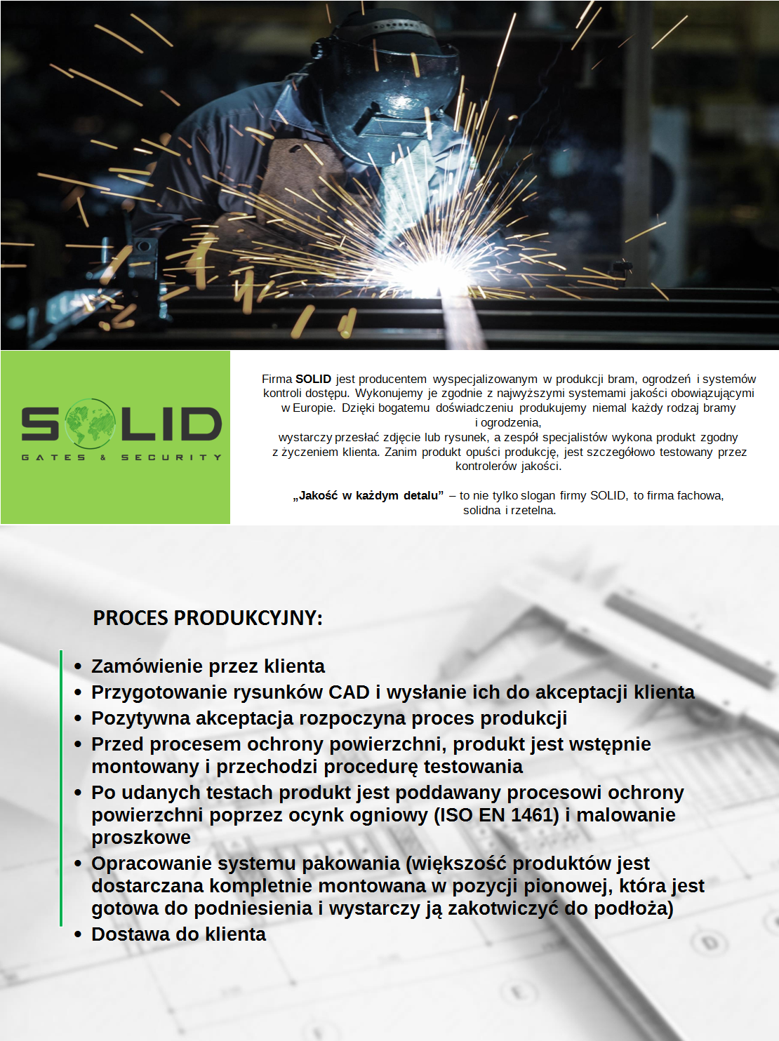 SOLID jest producentem bram, ogrodzeń i systemów kontroli dostępu. Bramy, ogrodzenia i systemy są projektowanie zgodnie z najwyższymi systemami jakości obowiązującymi w Europie.