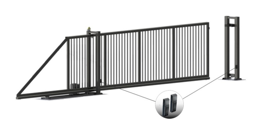 - Podwójny słup wtrzaskowy z regulowanym najazdem bramy